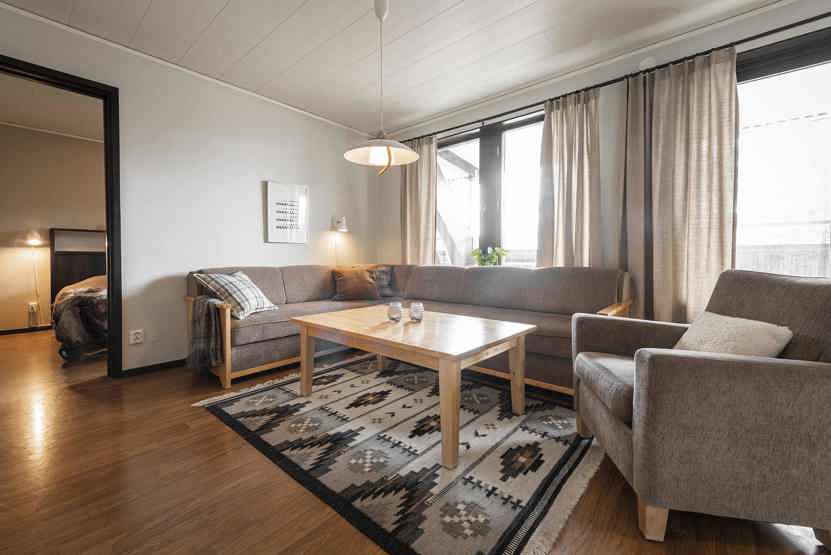 TV, tørreskab, rum til skiudstyr, altan (skovles ikke), adgang til fælles afslapningsområde med boblebad og sauna .