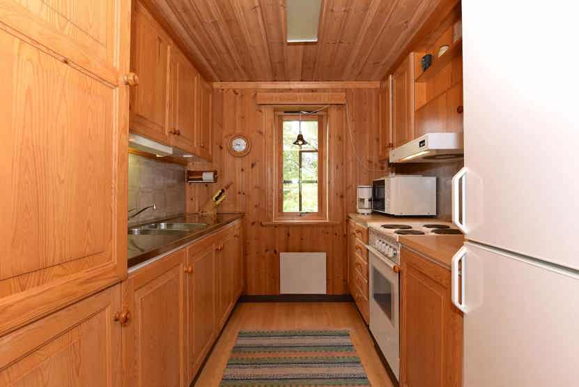 Køkkenet indeholder: elkomfur med ovn, køleskab, frys, microovn.