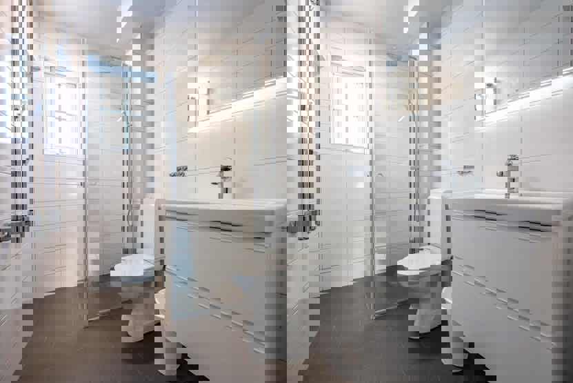 Badeværelset-1 = bruse/wc/sauna. Badeværelset-2 = bruse/wc.