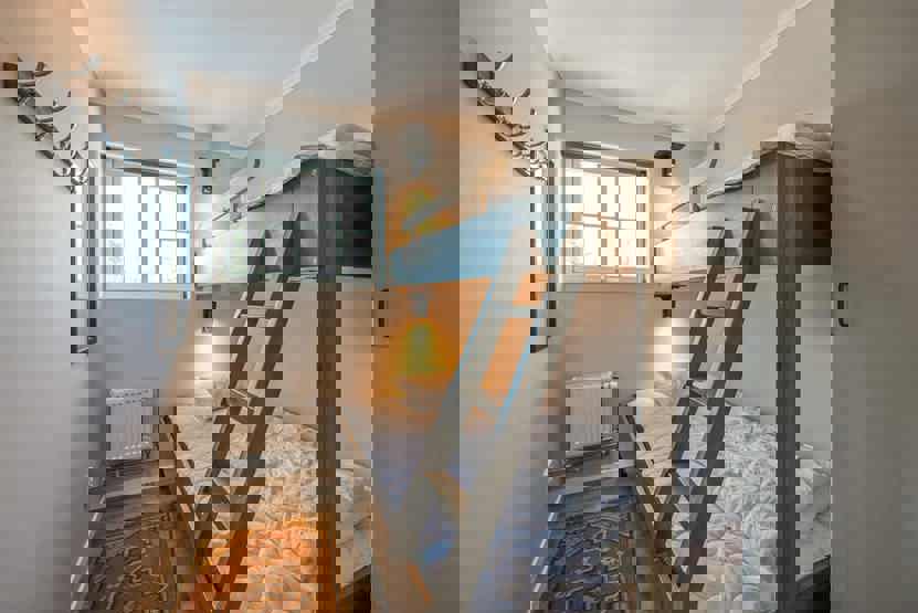 Soveværelse-1= 1 dobbeltseng. Soveværelse-2= 1 køjeseng med 120 cm bred underkøje . Soveværelse-3= 1 køjeseng med 120 cm bred underkøje . Soveværelse-4= 1 køjeseng med 120 cm bred underkøje .