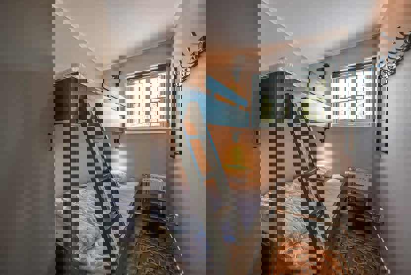 Soveværelse-1= 1 dobbeltseng. Soveværelse-2= 1 køjeseng med 120 cm bred underkøje . Soveværelse-3= 1 køjeseng med 120 cm bred underkøje . Soveværelse-4= 1 køjeseng med 120 cm bred underkøje .