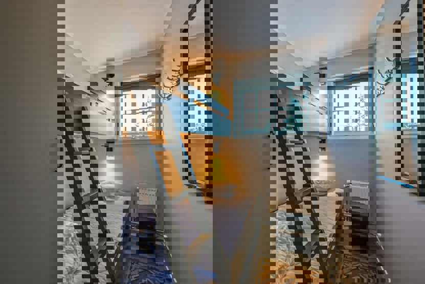 Soveværelse-1= 1 dobbeltseng. Soveværelse-2= 1 køjeseng med 120 cm bred underkøje . Soveværelse-3= 1 køjeseng med 120 cm bred underkøje . Soveværelse-4= 1 køjeseng med 120 cm bred underkøje .