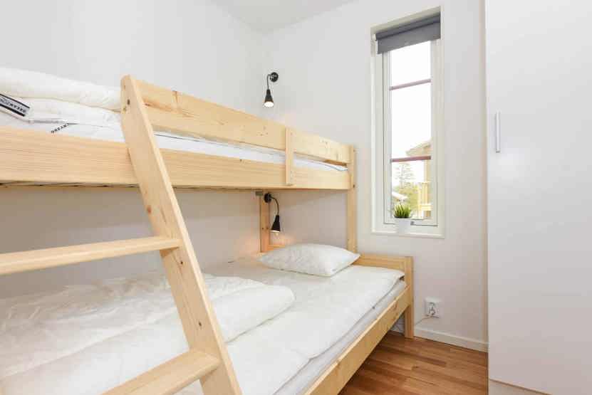Soveværelse-1= 1 dobbeltseng. Soveværelse-2= 1 køjeseng. Soveværelse-3= 1 dobbeltseng. Soveværelse-4= 1 køjeseng.