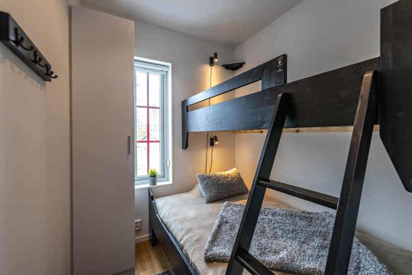 Soveværelse-1= 1 dobbeltseng 180 cm bred. Soveværelse-2= 1 køyeseng med 120 cm bred underkøye og 80 cm bred overkøye. Soveværelse-3= 1 køyeseng med 120 cm bred underkøye og 80 cm bred overkøye.