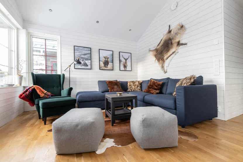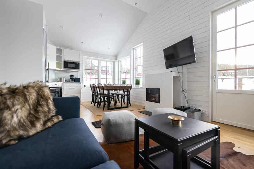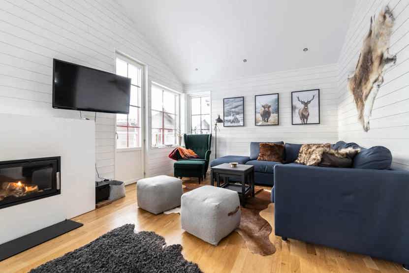 TV, brændeovn (brænde indgår ikke), vaskemaskine, tørretumbler, tørreskab, rum til skiudstyr, balkon.
