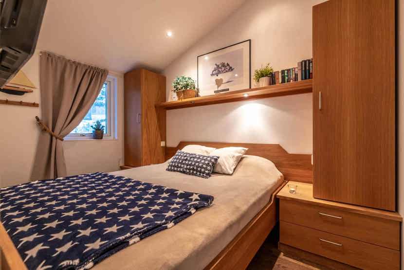 Soveværelse-1= 1 dobbeltseng. Soveværelse-2 (uden vindue)= 1 køjeseng med 140 cm bred underkøje. Soveværelse-3 (uden vindue)= 1 køjeseng.