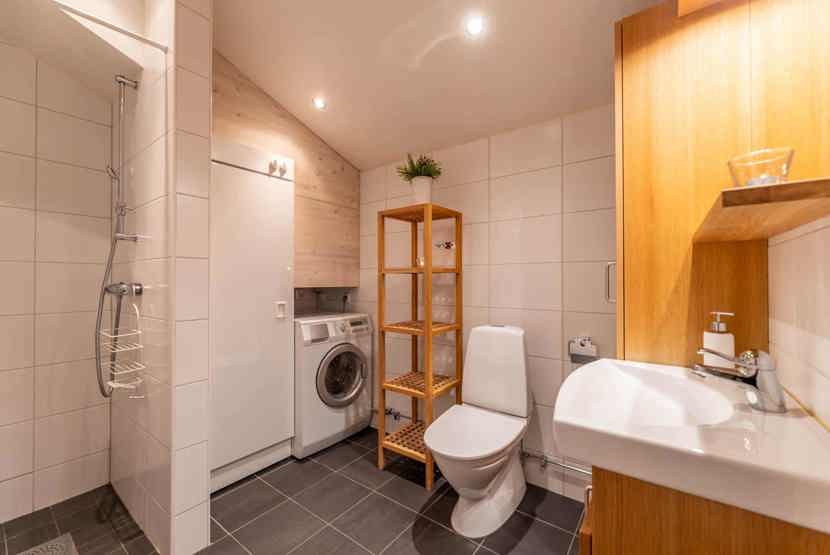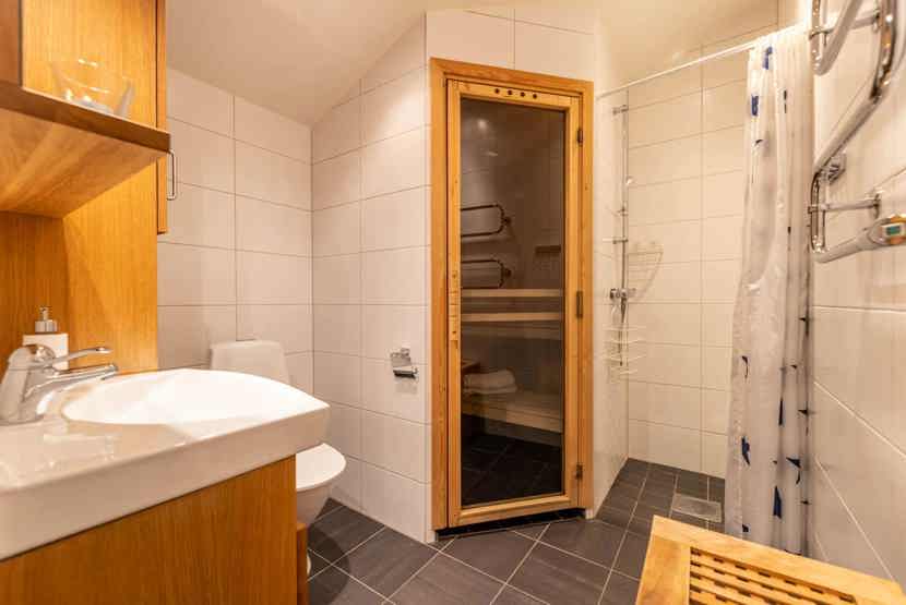Badeværelset-1 = bruse/wc/sauna. Badeværelset-2 = bruse/wc.