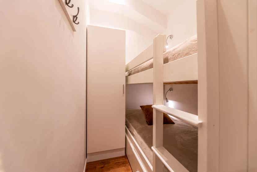 Soveværelse-2 (uden vindue)= 1 køjeseng med 120 cm bred underkøje . Soveværelse-3 (uden vindue)= 1 køjeseng.