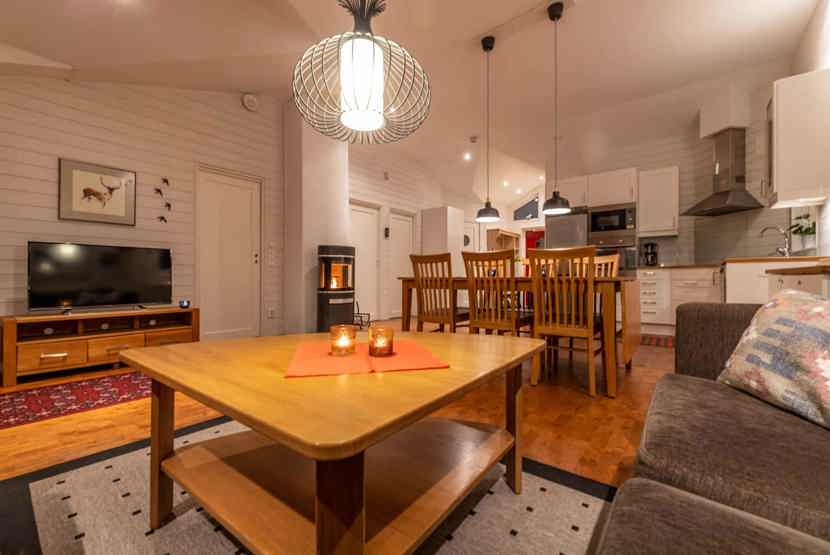 TV, tørreskab, brændeovn (brænde indgår ikke), vaskemaskine, skistøvletører, rum til skiudstyr, (balkonen må ikke anvendes).