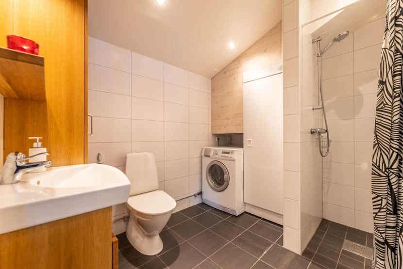 Badeværelset-1 = bruse/wc/sauna. Badeværelset-2 = bruse/wc.
