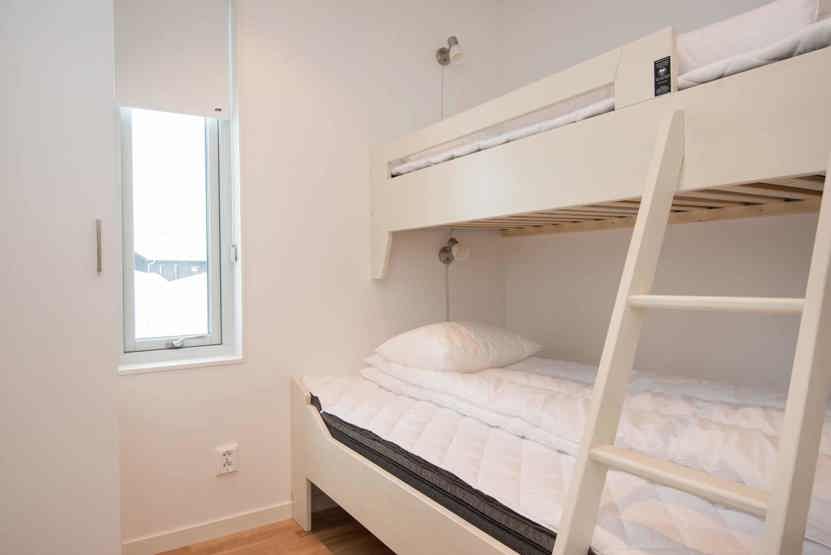 Soveværelse-1= 1 dobbeltseng 180 cm bred. Soveværelse-2= 1 køjeseng med 120 cm bred underkøje . Soveværelse-3= 1 køjeseng med 120 cm bred underkøje .