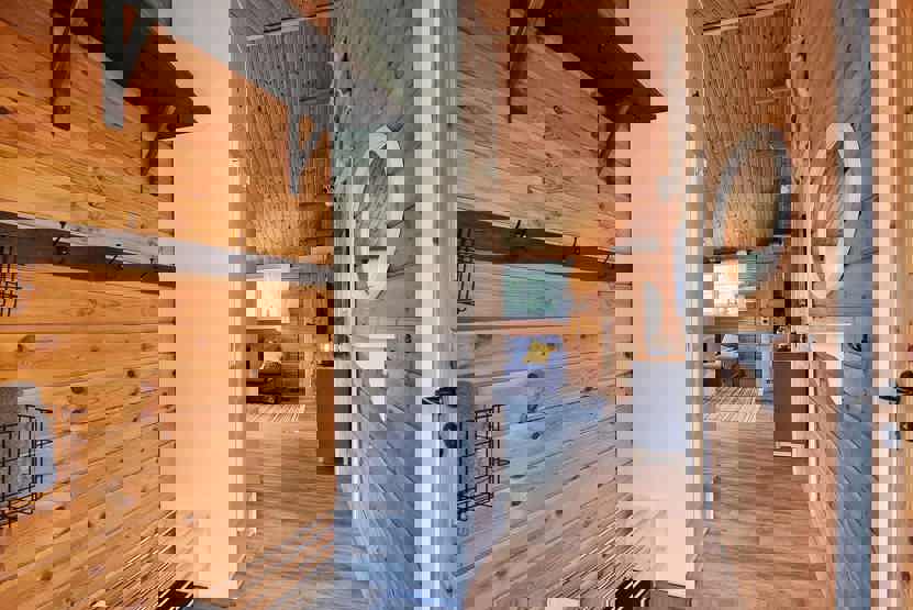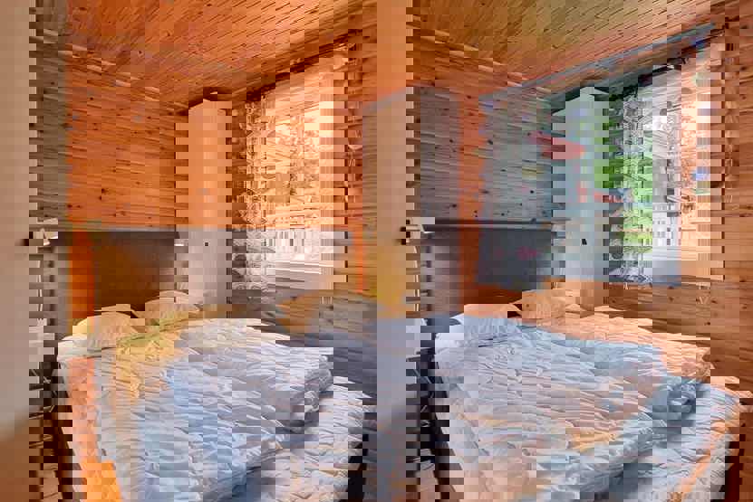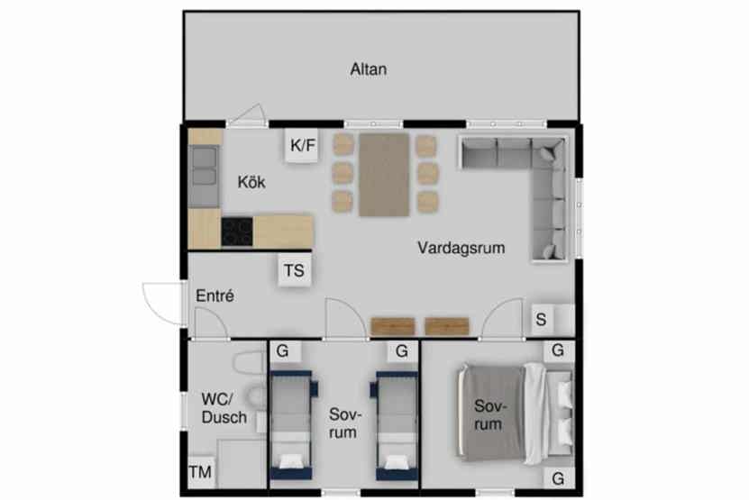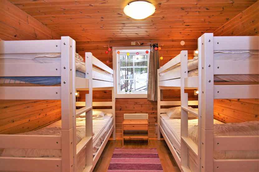 Soveværelse-1 = 1 dobbeltseng 160 cm bred. Soveværelse-2 = 2 køjesenge hvor både over og underkøje er 90 cm bred.