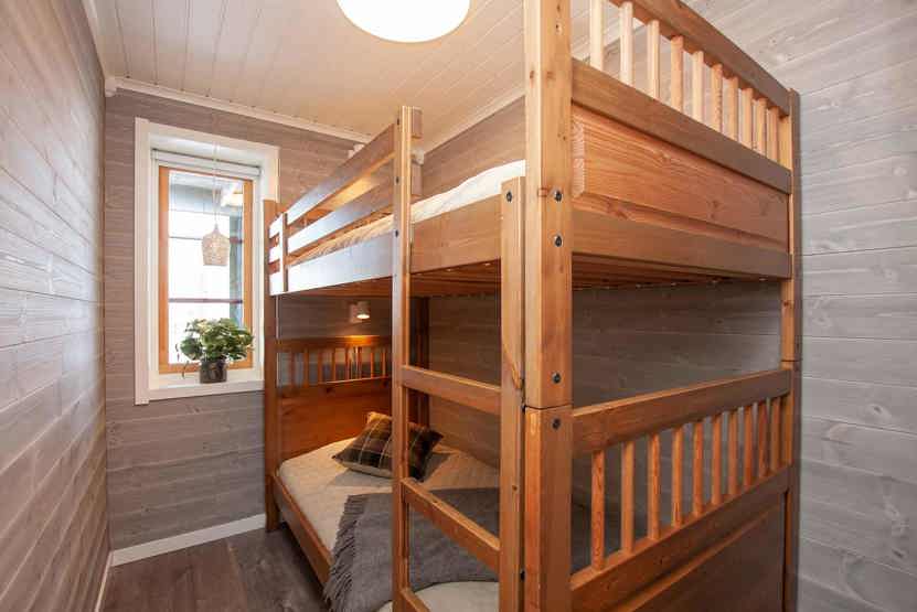 Soveværelse-1 = 1 dobbeltseng 160 cm bred. Soveværelse-2 = 1 køjeseng hvor både over og underkøje er 90 cm bred.