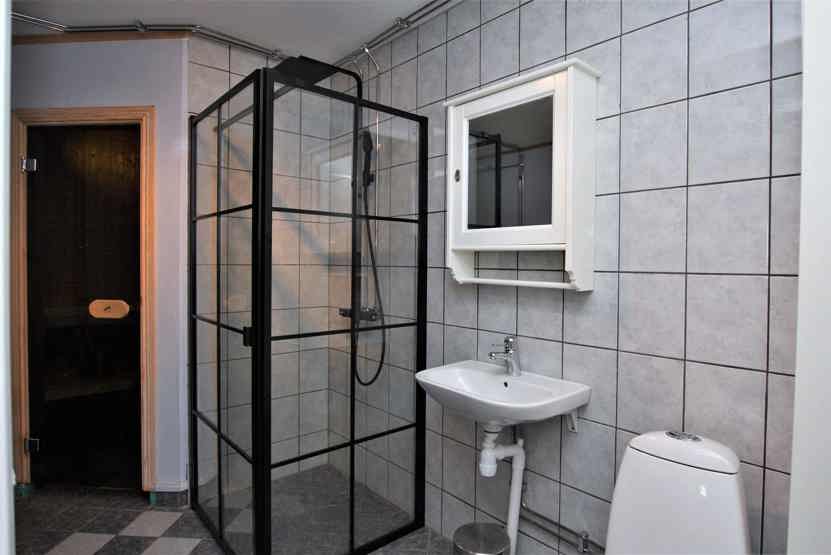 Badeværelse 1 = bruser/WC/sauna. Badeværelse 2 = wc.