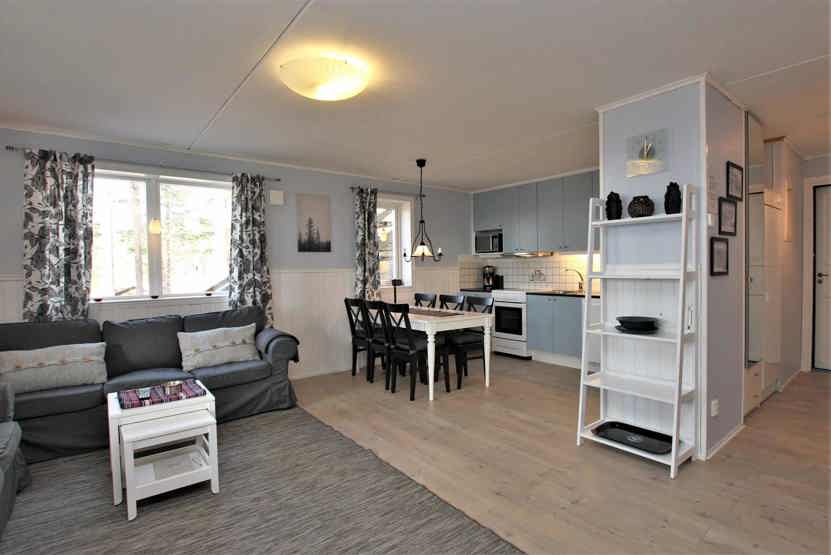 Bergsidan ligger i Björnrike. Lejlighed i stueetage, 6 sengepladser, 75 kvm, alrum med køkkenafdeling, 3 soveværelse, 1 bruser, 2 WC, sauna.