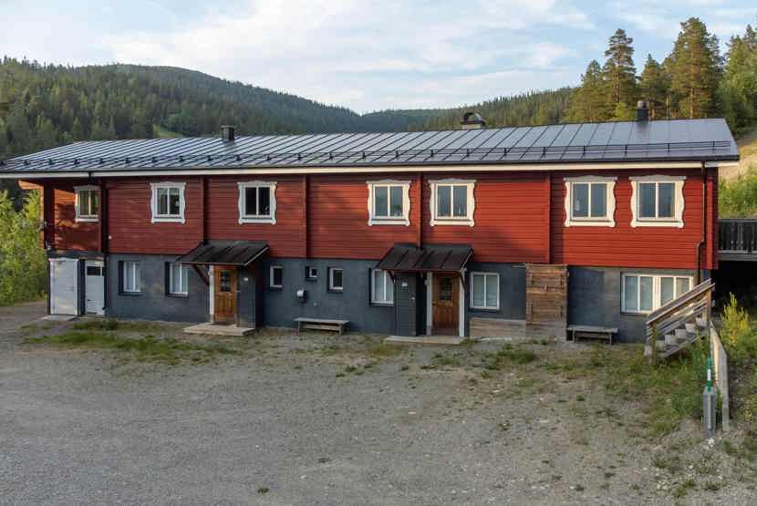 Bergsidan ligger i Björnrike. Lejlighed i stueetage, 8 sengepladser, 80 kvm, alrum med køkkenafdeling, 5 soveværelse, 3 brusere, 3 WC, sauna.