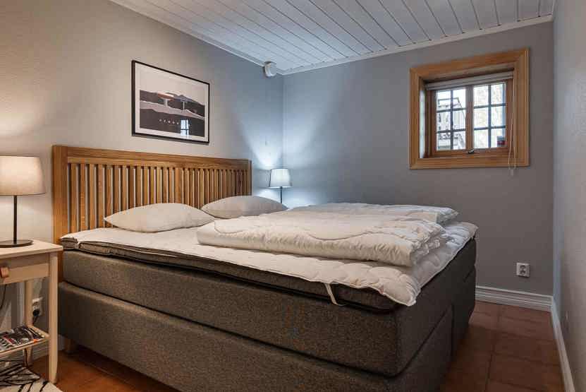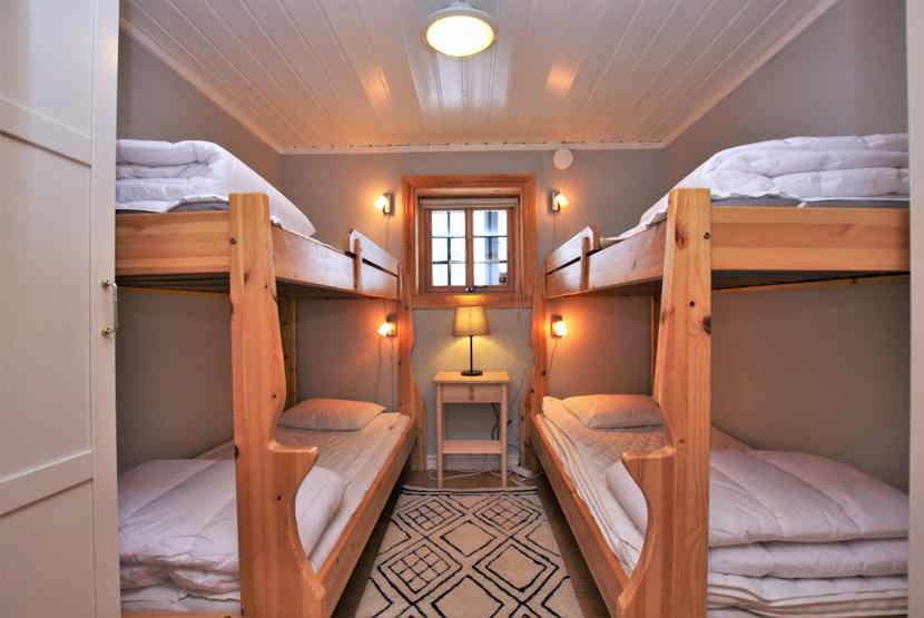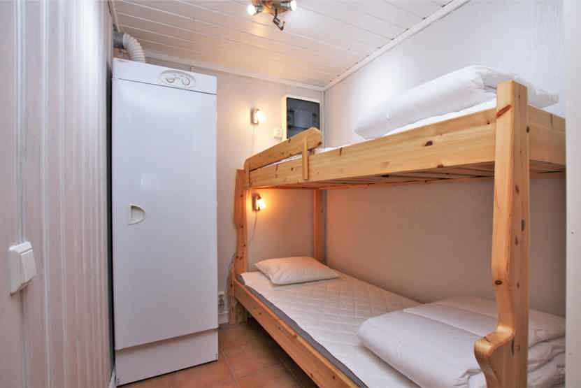 Soveværelse-1 = 1 dobbeltseng 180 cm bred. Soveværelse-2 = 2 køjesenger med 90 cm bred underkøje og 80 cm bred overkøje.