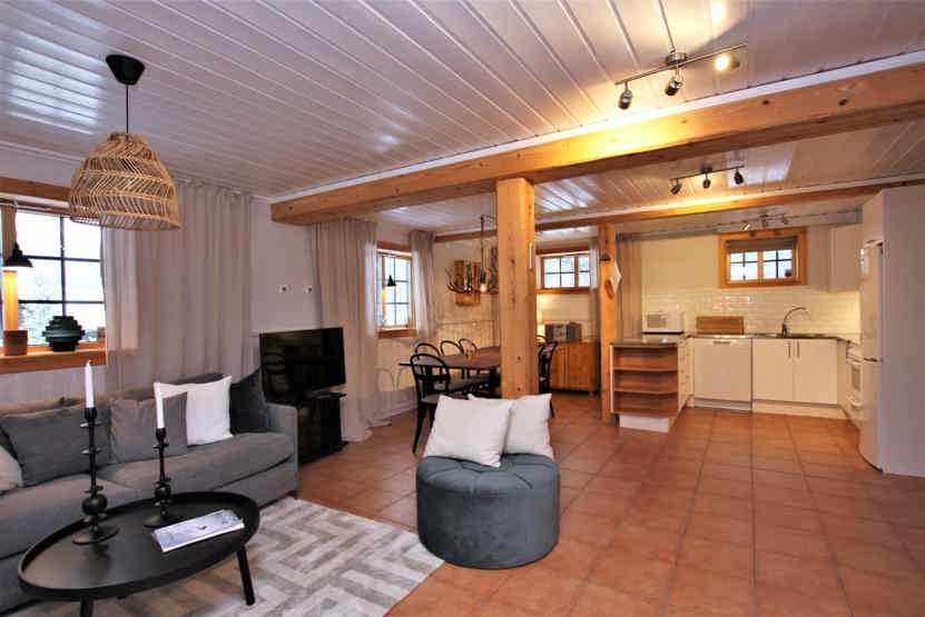 Stue med lille køkkenafdeling, TV.