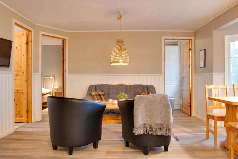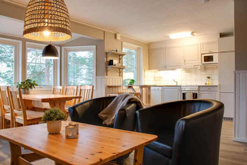 Björnbyn ligger i Björnrike. Lejlighed på første etage, 6 sengepladser, 60 kvm, alrum med køkkenafdeling, 3 soveværelse, 1 bruser, 2 WC, sauna.