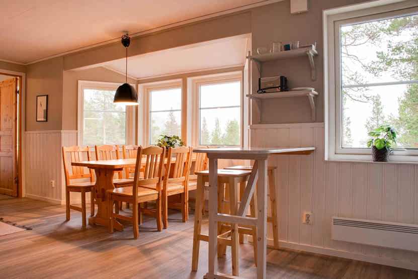 Stue med TV, lille køkkenafdeling. tørreskab, skiopbevaring, 1parkering med motorvarmeplads, adgang til skivoksskur.