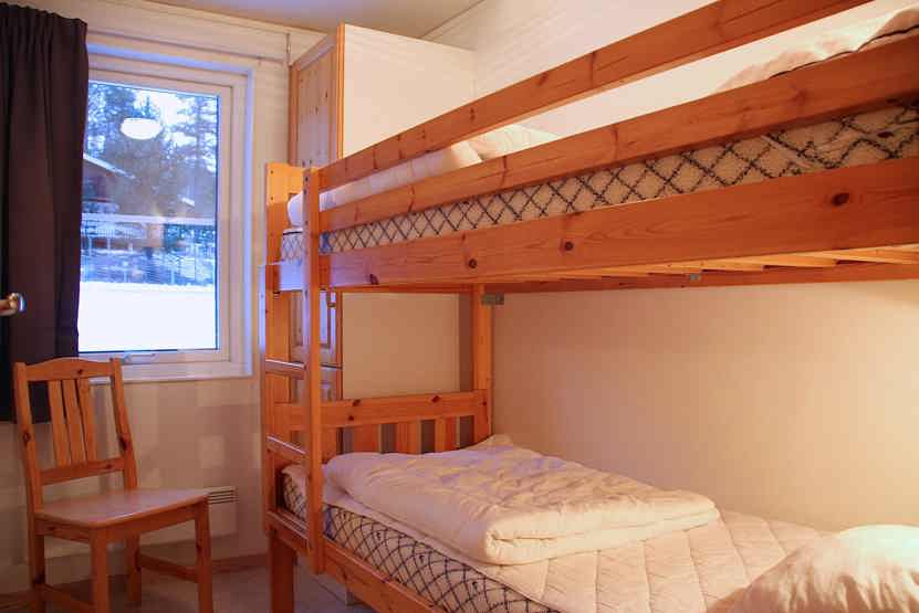 Björnbyn ligger i Björnrike. Lejlighed på første etage, 6 sengepladser, 60 kvm, alrum med køkkenafdeling, 3 soveværelse, 1 bruser, 2 WC, sauna.