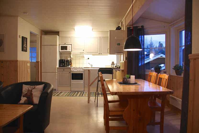 Stue med TV, lille køkkenafdeling. tørreskab, skiopbevaring, 1parkering med motorvarmeplads, adgang til skivoksskur.