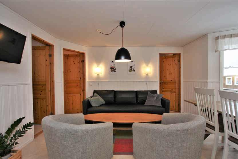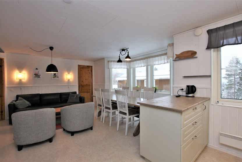 Stue med TV, lille køkkenafdeling. tørreskab, skiopbevaring, 1parkering med motorvarmeplads, adgang til skivoksskur.