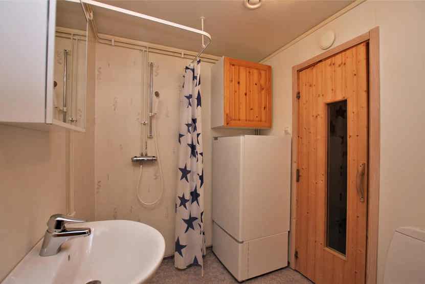 Björnbyn ligger i Björnrike. Lejlighed på første etage, 6 sengepladser, 60 kvm, alrum med køkkenafdeling, 3 soveværelse, 1 bruser, 2 WC, sauna.