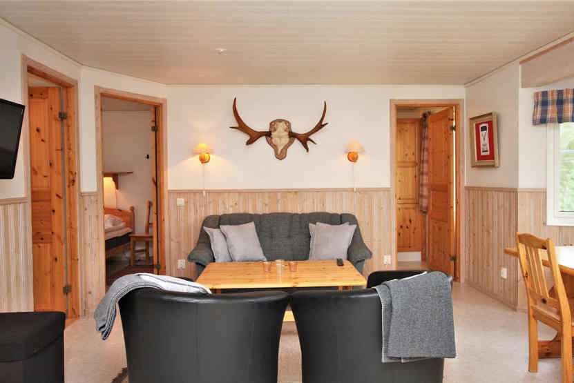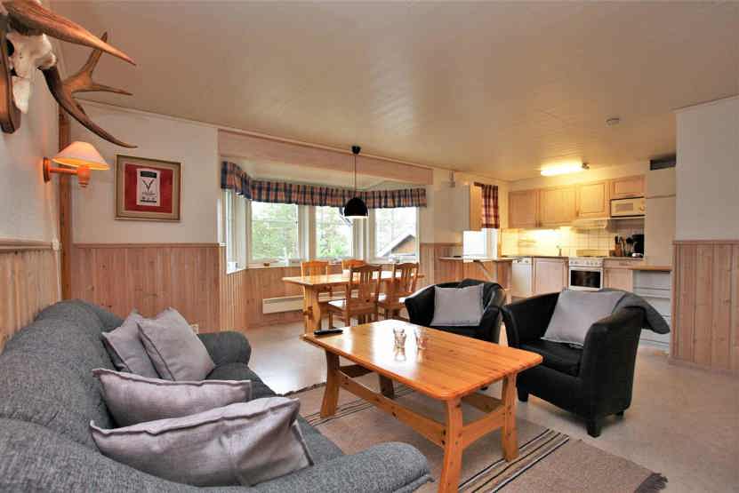 Stue med TV, lille køkkenafdeling. tørreskab, skiopbevaring, 1parkering med motorvarmeplads, adgang til skivoksskur.