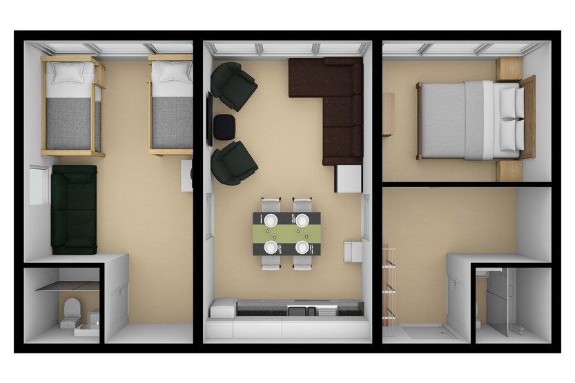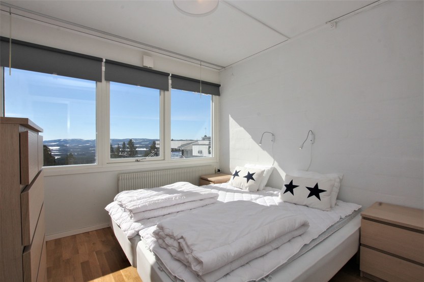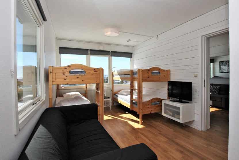 Soveværelse-1 = 1 dobbeltseng 180 cm bred. Soveværelse-2 = køjesenge hvor både over og underkøje er 90 cm bred.