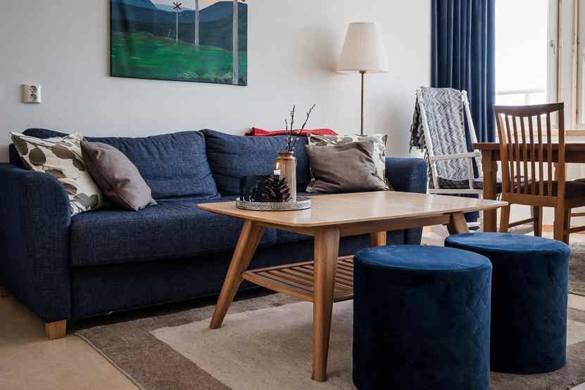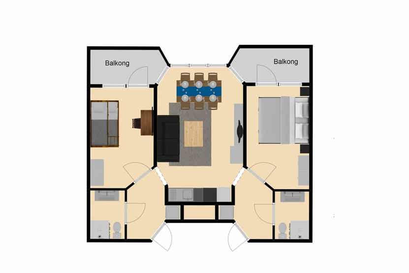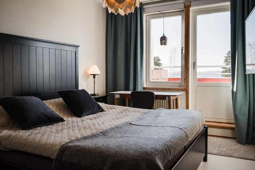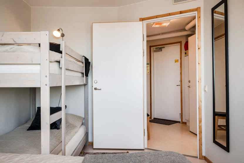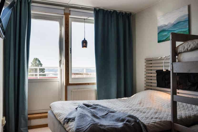 Soveværelse-1 = 1 dobbeltseng. Soveværelse-2 = 1 dobbeltseng som kan laves om til to enkeltsenge, 1 køjeseng hvor både over og underkøje er 90 cm bred.