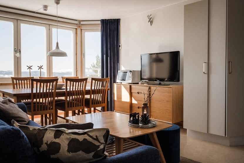 2 TV, tørreskab, balkon/altan (der skovles ikke sne), skiopbevaring, med en fælles indgang, elevator findes i huset, 1 parkeringsplads.