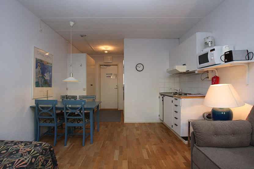 Björnrike Centrat ligger i Björnrike. Studio på 4 etage, stueetage, Mod nord, 1+2 sengepladser, 22 kvm, alrum med kombineret sove- og køkkenafdeling, 1 bruser, 1 WC.