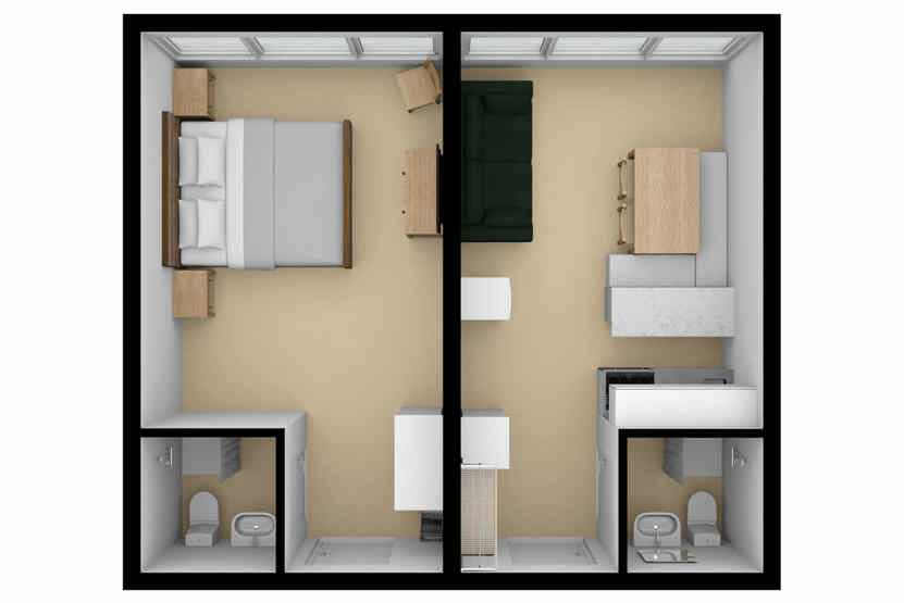 Soveværelse-1 = 1 dobbeltseng som kan laves om til to enkeltsenge.
