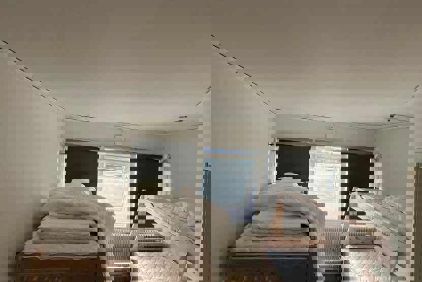 Soveværelse-1 = 1 dobbeltseng som kan laves om til to enkeltsenge. Soveværelse-2 = 2 køjesenger med 120 cm bred underkøje og 90 cm bred overkøje.