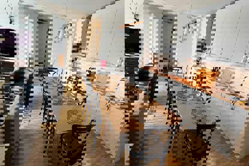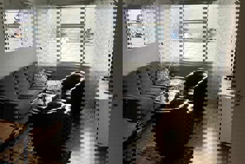 Stue med lille køkkenafdeling.