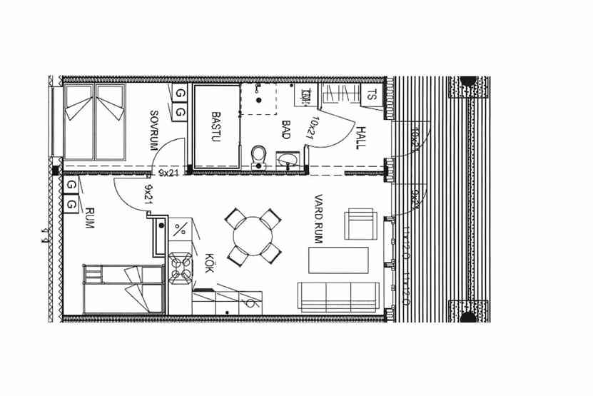 Björnterrassen ligger i Björnrike. Lejlighed på 1 etage, stueetage, 5 sengepladser, 50 kvm, alrum med køkkenafdeling, 2 soveværelse, 1 bruser, 1 WC, sauna.