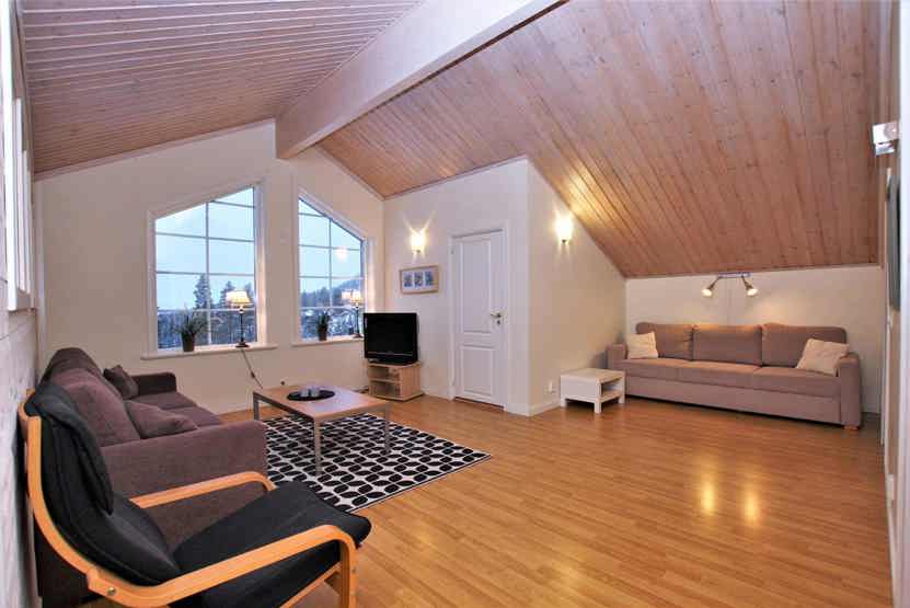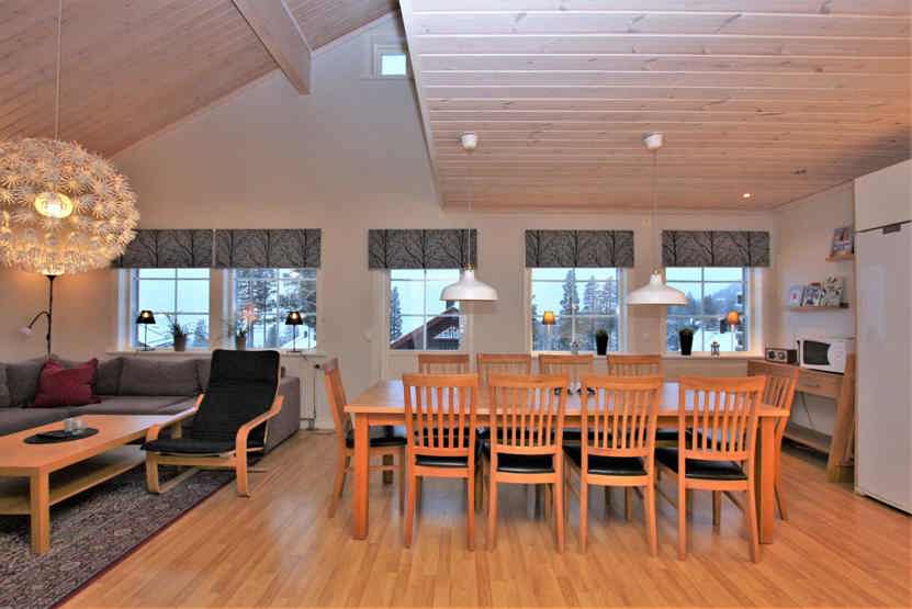 Björnvallen ligger i Björnrike. Lejlighed i tvillinghus i 2 etage, 12 sengepladser, 116 kvm, alrum med køkkenafdeling, 4 soveværelse, 2 brusere, 2 WC, sauna.