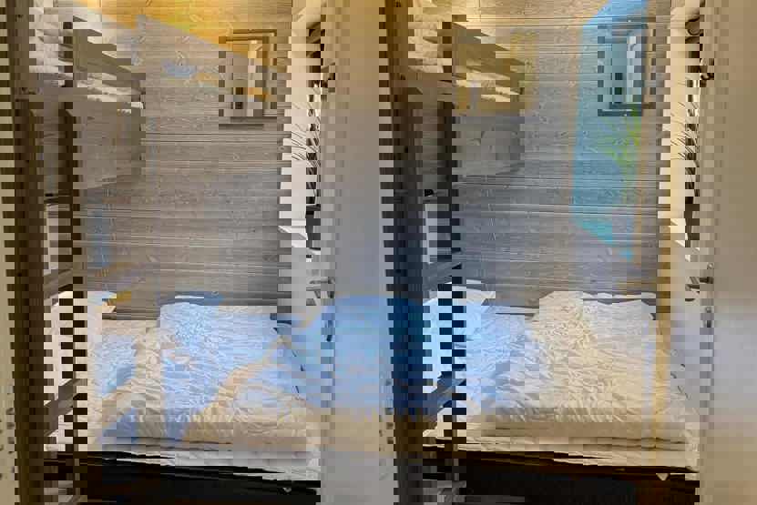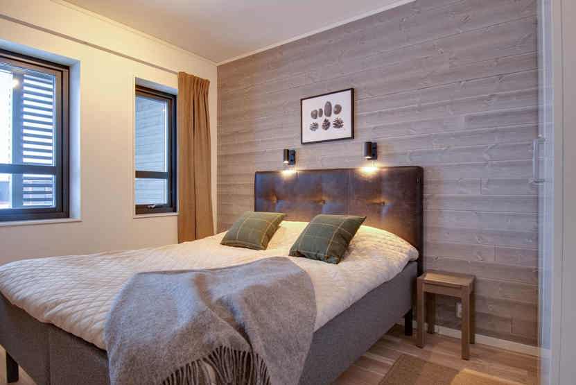 Soveværelse-1 = 1 dobbeltseng 160 cm bred. Soveværelse-2 = 1 køjeseng med 160 cm bred underkøje. Soveværelse-3 = 1 køyeseng med 120 cm bred underkøye og 80 cm bred overkøye.