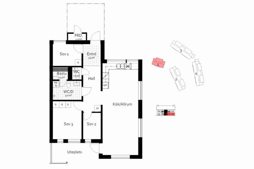 Badeværelse 1 = bruser/WC/sauna. Badeværelse 2 = wc.