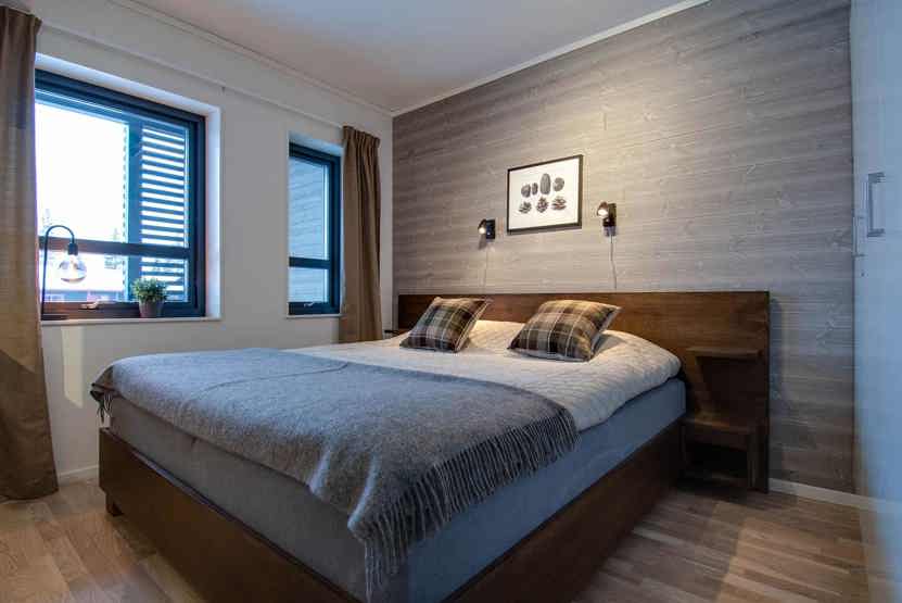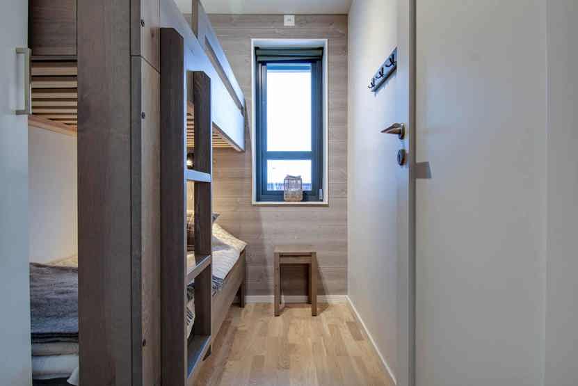 Soveværelse-1 = 1 dobbeltseng 180 cm bred. Soveværelse-2 = 1 køyeseng med 120 cm bred underkøye og 80 cm bred overkøye. Soveværelse-3 = 1 køjeseng hvor både over og underkøje er 80 cm bred.