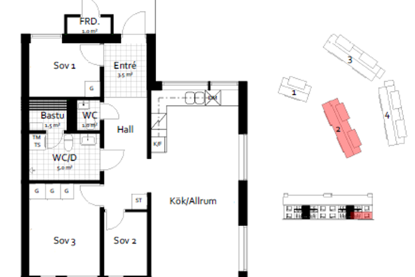 Badeværelse 1 = bruser/WC/sauna. Badeværelse 2 = wc.