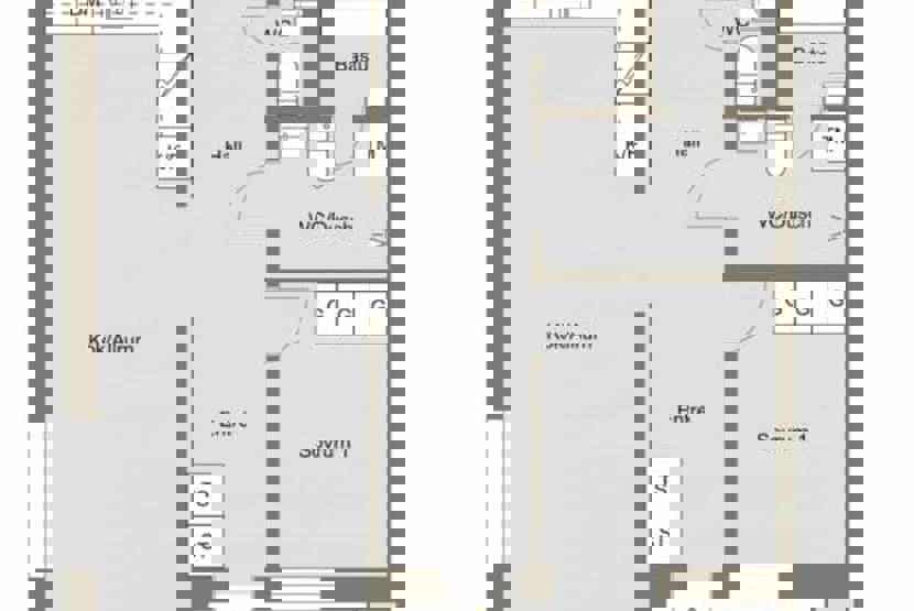Badeværelse 1 = bruser/WC/sauna. Badeværelse 2 = wc.