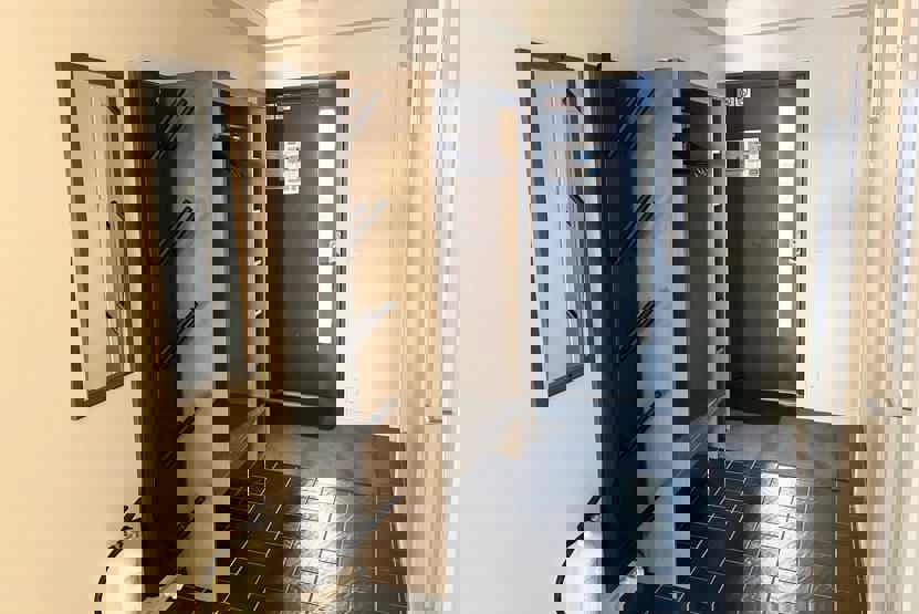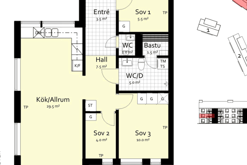 Badeværelse 1 = bruser/WC/sauna. Badeværelse 2 = wc.