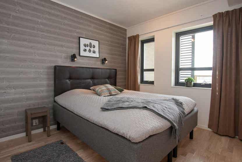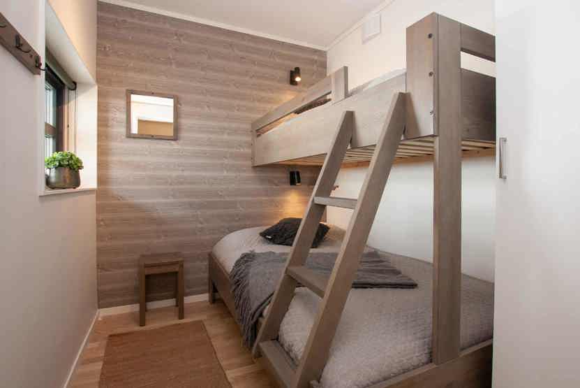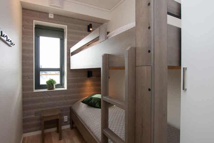 Soveværelse-1 = 1 dobbeltseng 160 cm bred. Soveværelse-2 = 1 køyeseng med 120 cm bred underkøye og 80 cm bred overkøye. Soveværelse-3 = 1 køjeseng hvor både over og underkøje er 80 cm bred.