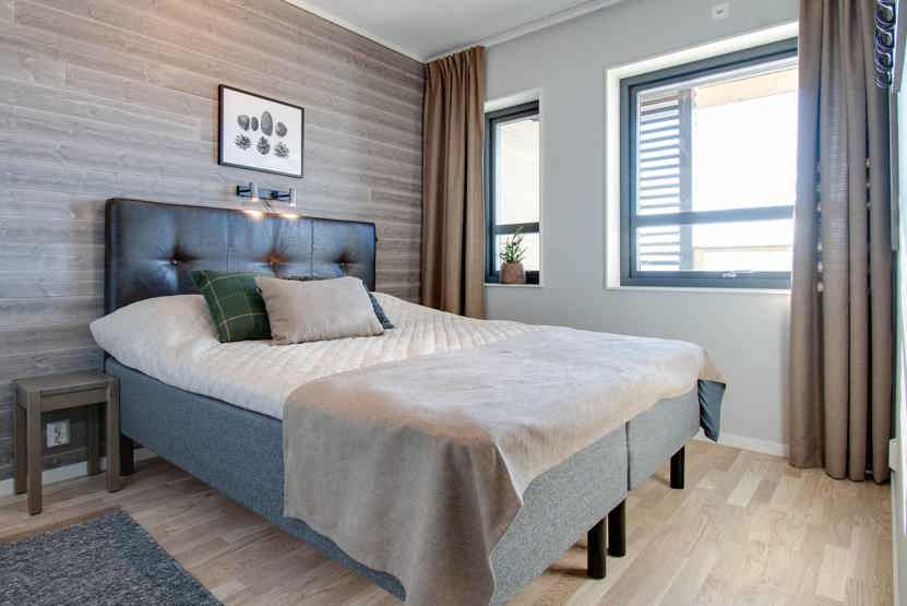 Soveværelse-1 = 1 dobbeltseng 160 cm bred. Soveværelse-2 = 1 køyeseng med 120 cm bred underkøye og 80 cm bred overkøye. Soveværelse-3 = 1 køjeseng hvor både over og underkøje er 80 cm bred.