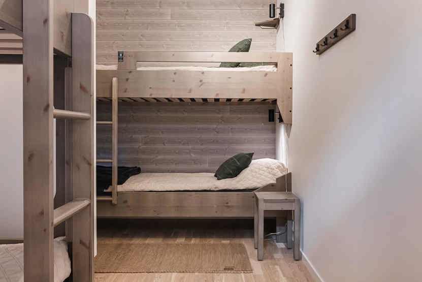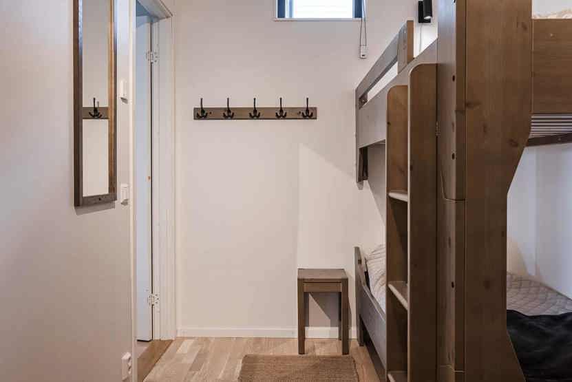 Soveværelse-1 = 1 dobbeltseng 160 cm bred. Soveværelse-2 = 2 køjesenge hvor både over og underkøje er 80 cm bred.