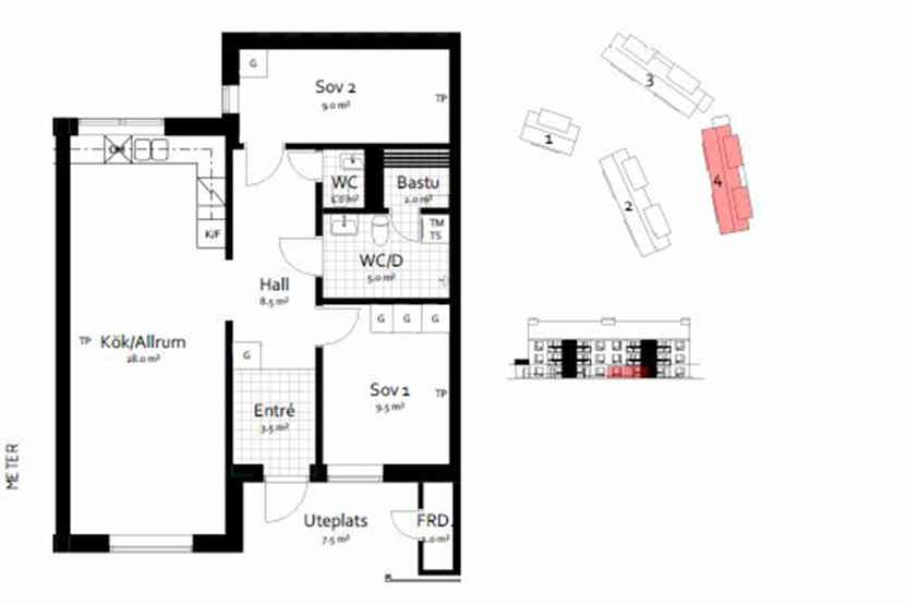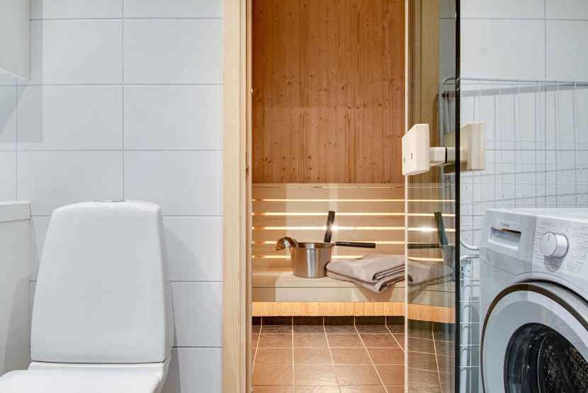 Badeværelse 1 = bruser/WC/sauna. Badeværelse 2 = wc.