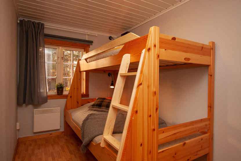 Soveværelse-1 = 1 køjeseng med 105 cm bred underkøje og 80 cm bred overkøje. Soveværelse-2 = 1 køjeseng med 105 cm bred underkøje og 80 cm bred overkøje.