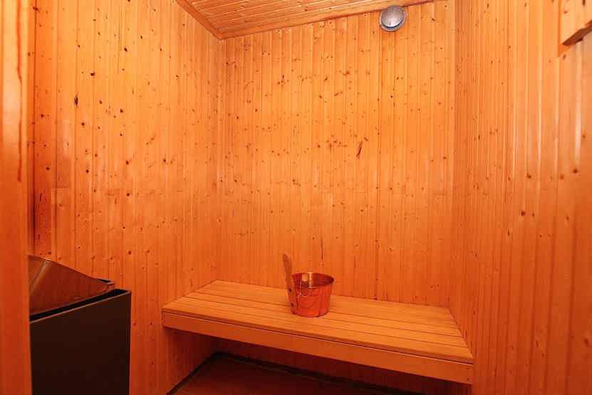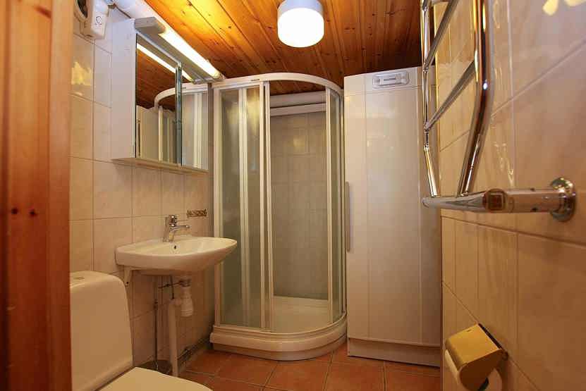 Badeværelse 1 = bruser, WC samt lille sauna.